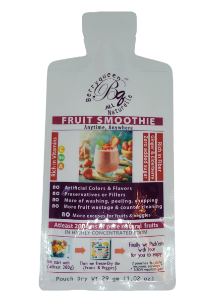 Each Pouch Wt: 29 grams of Freeze Dried Smoothie